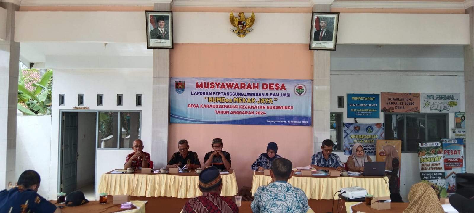 Kegiatan Musyawarah Desa (MUSDES) Laporan Pertanggungjawaban & Evaluasi "Bumdes Mekar Jaya" Desa Karangsembung tahun anggaran 2024 dilaksanakan pada hari Rabu, 19 Februari 2025 bertempat di Pendopo Balaidesa Karangsembung, kegiatan dimulai pukul 13.00 WIB sampai dengan selesai, dihadiri oleh Kasi Pemberdayaan Masyarakat Kecamatan Nusawungu, Perangkat Desa Karangsembung, Ketua BPD dan anggotanya, Direktur Bumdes Mekar Jaya dan pengurusnya, Ketua RT, RW, tokoh agama dan tokoh masyarakat Desa Karangsembung.